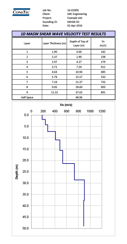 El análisis multicanal de ondas de superficie (MASW) es un método geofísico que utiliza la propagación de ondas de superficie (ondas de Rayleigh) para realizar un perfil del subsuelo. El resultado de un estudio MASW es un perfil de 20 a 60 m de profundidad de la velocidad de las ondas de corte del subsuelo (rigidez de corte), sin la necesidad de una perforación. Se puede completar dichos estudios en 1D o en 2D.
