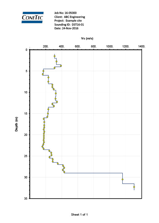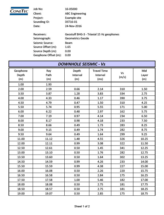 - Downhole / crosshole Vs and Vp profiles for seismic site characterization and design
